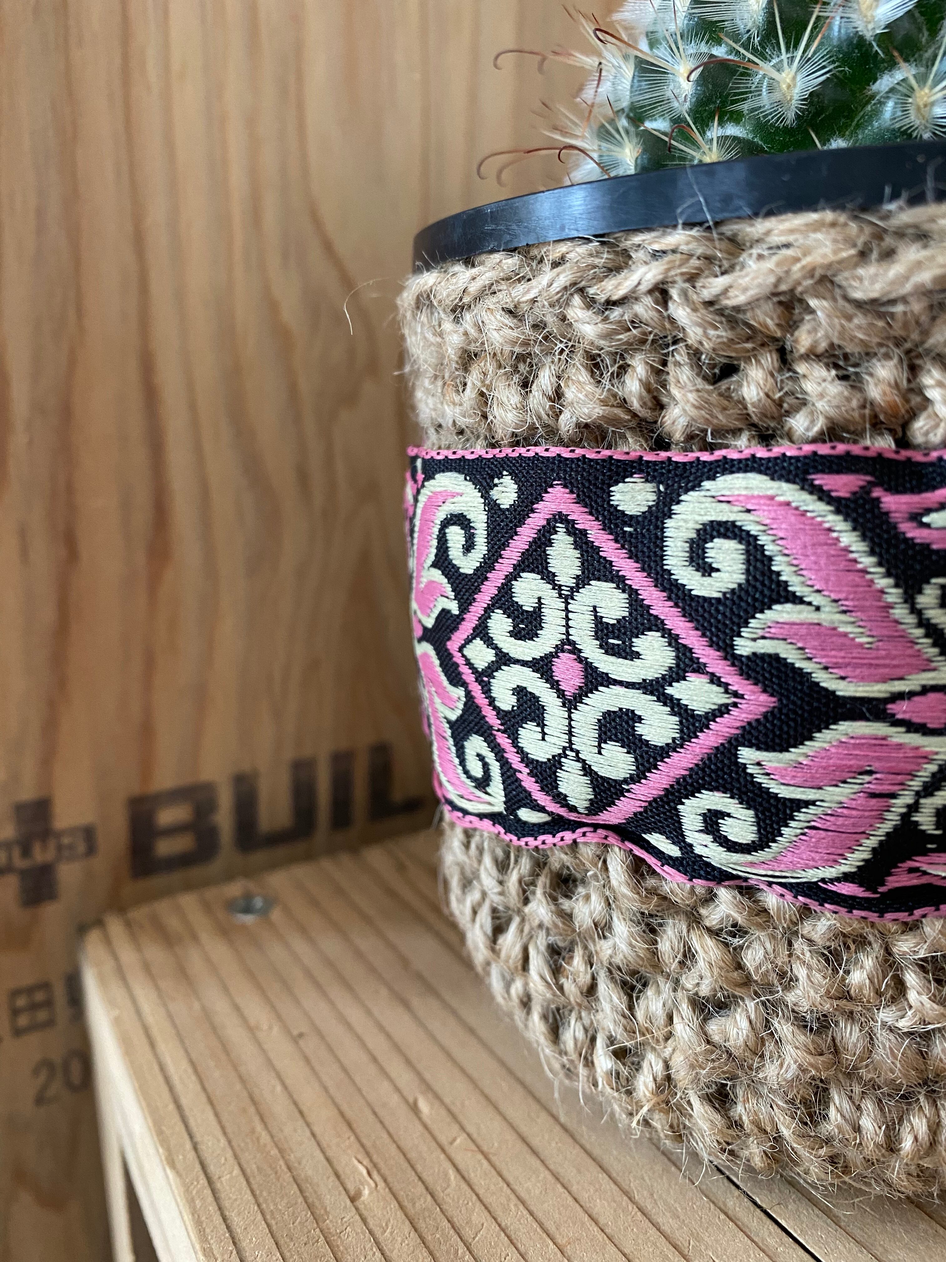 インドのオールドリボンを使用したハンドメイド鉢カバーです。