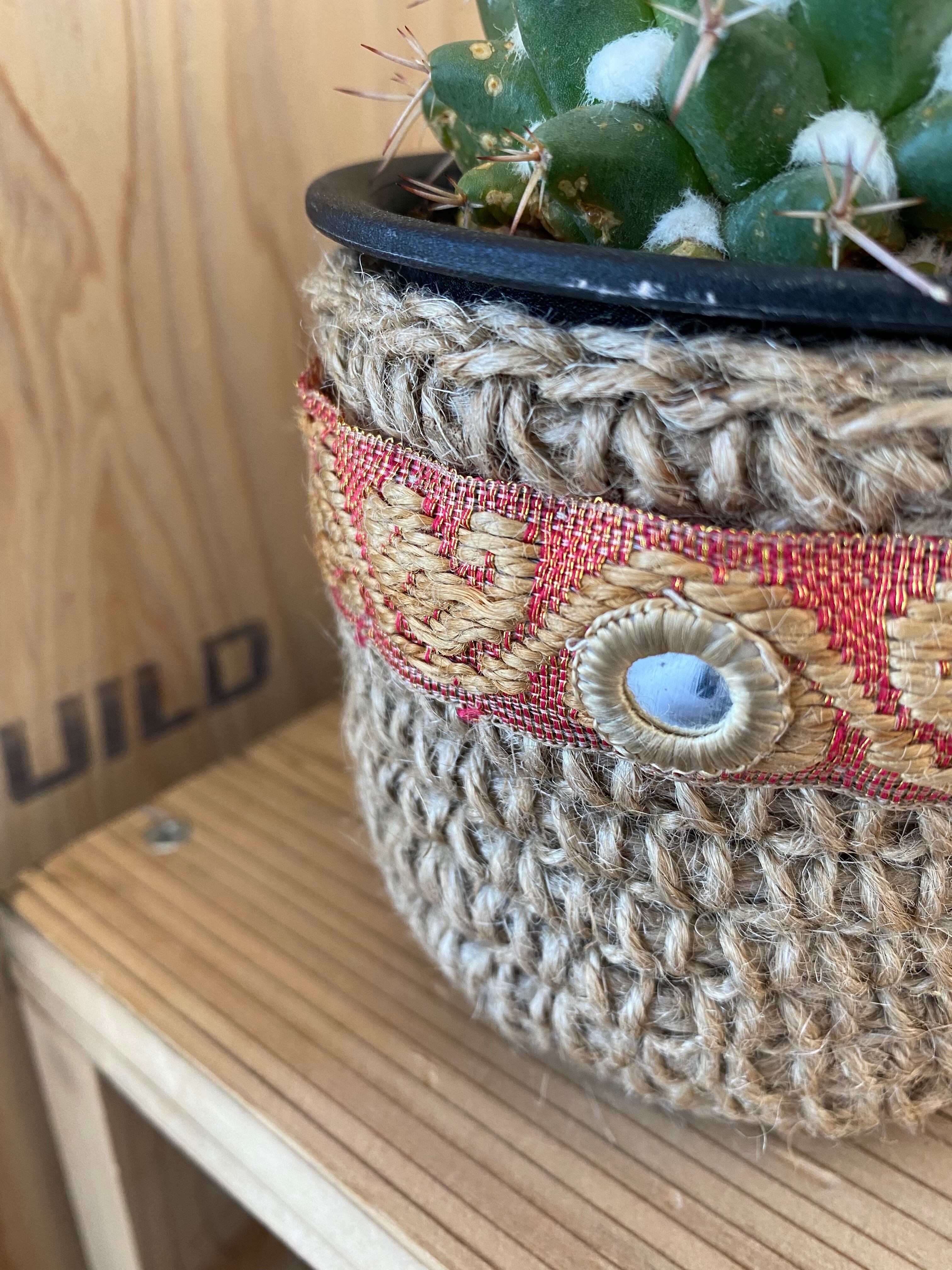 淡い色合いで落ち着いた鉢カバーに仕上げました。