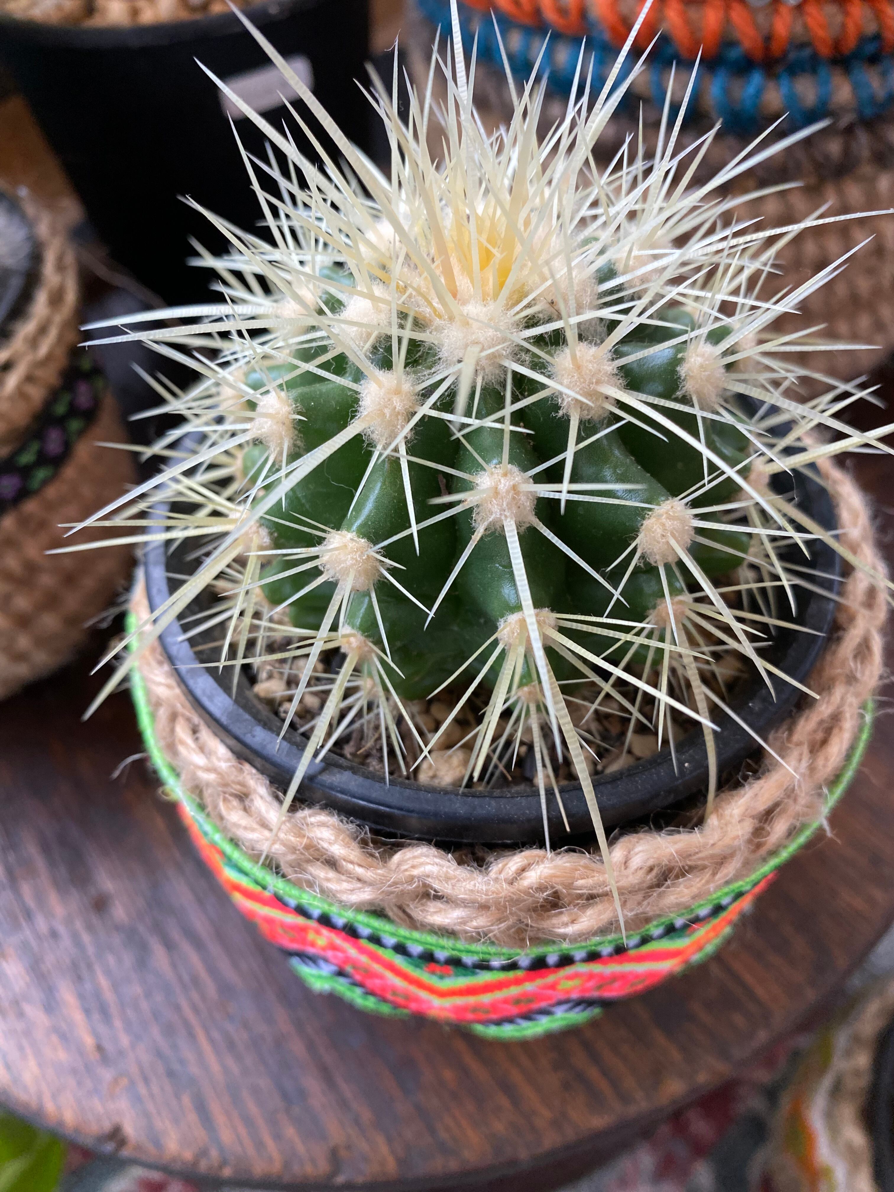 モン族刺繍のリボンを少しリメイクして鉢カバー作りました。